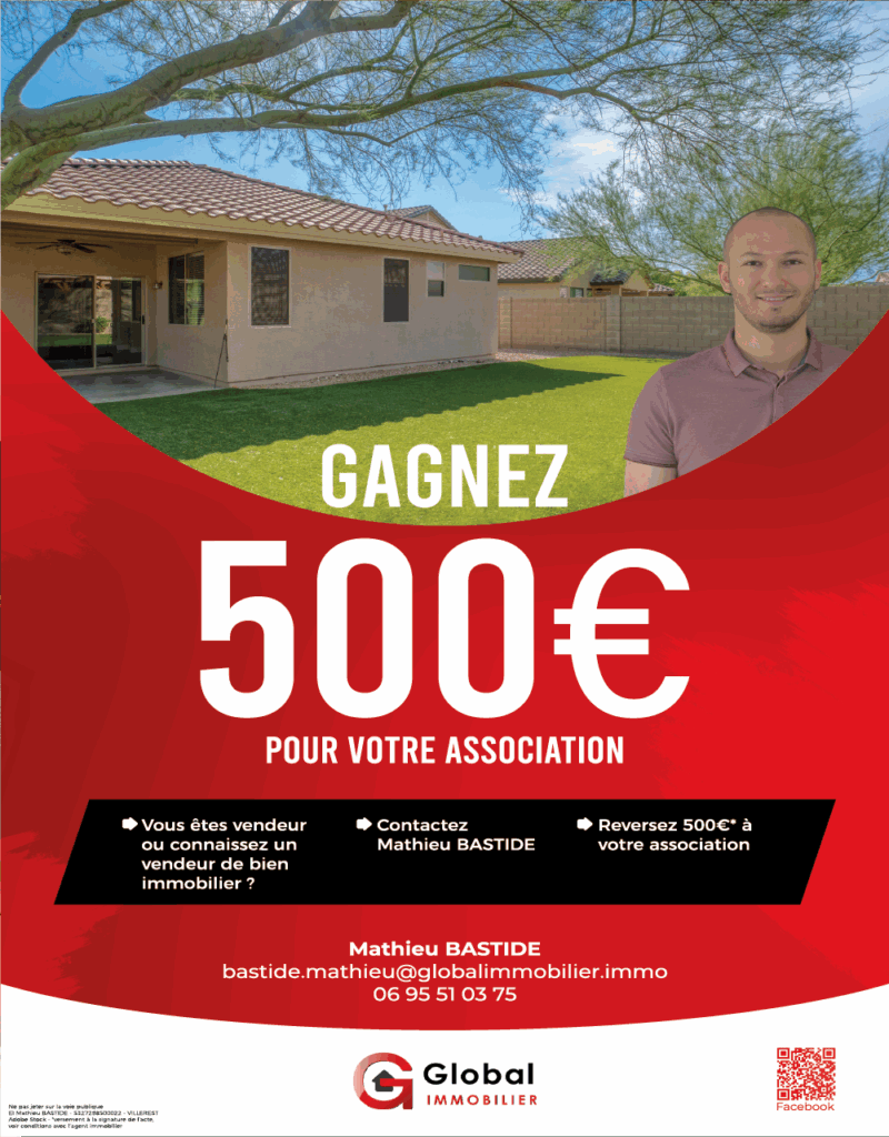 Pour un conseiller indépendant de Global Immobilier, l’objectif était clair : allier son activité professionnelle à une cause locale qui lui tient à cœur. À travers une opération originale, il a choisi de soutenir les associations sportives en reversant une contribution financière pour chaque apport d’achat réalisé. Pour valoriser cette initiative, un flyer a été créé : une communication claire et impactante, mettant en avant à la fois son engagement solidaire et son expertise immobilière. Un support pensé pour inspirer confiance, tout en renforçant le lien entre immobilier et dynamisme local.
