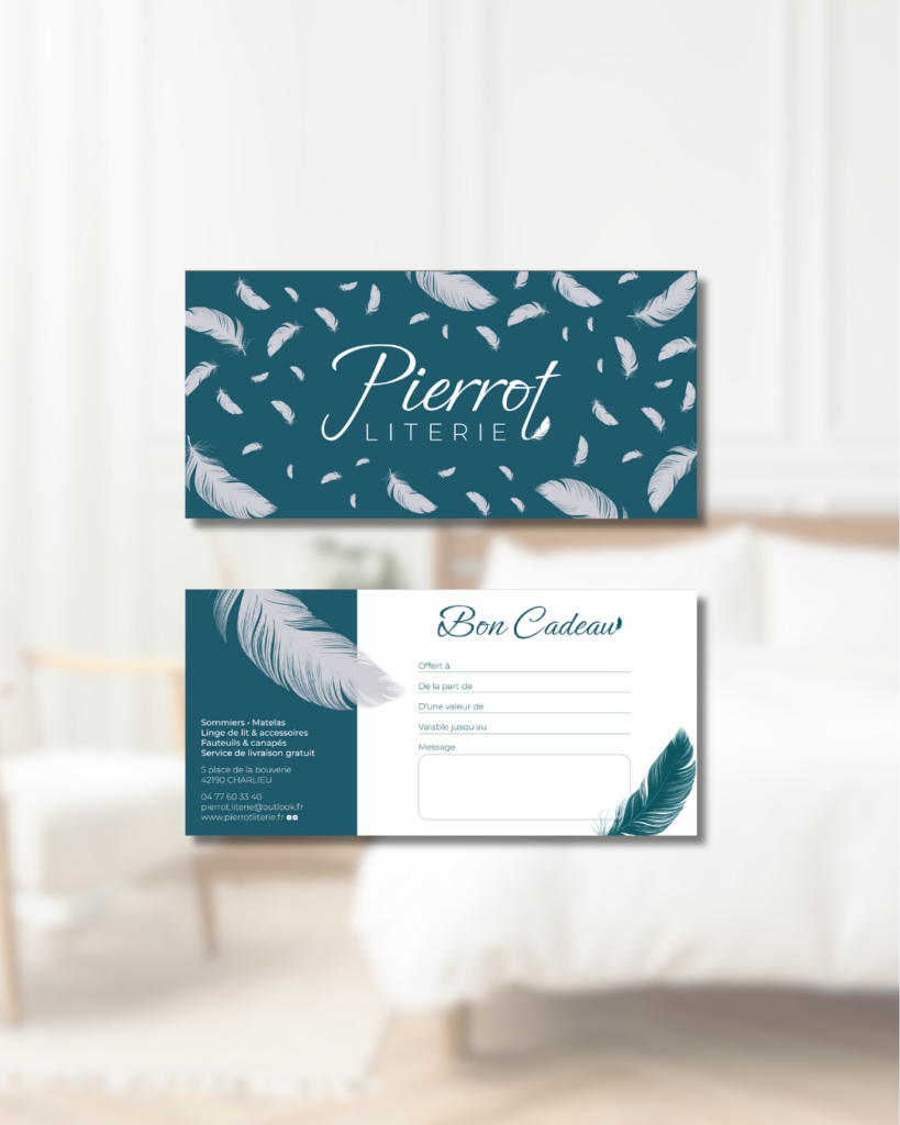 - Déclinaisons graphiques et supports de communication : cartes de visite, cartes de remerciement, cartes cadeau et templates