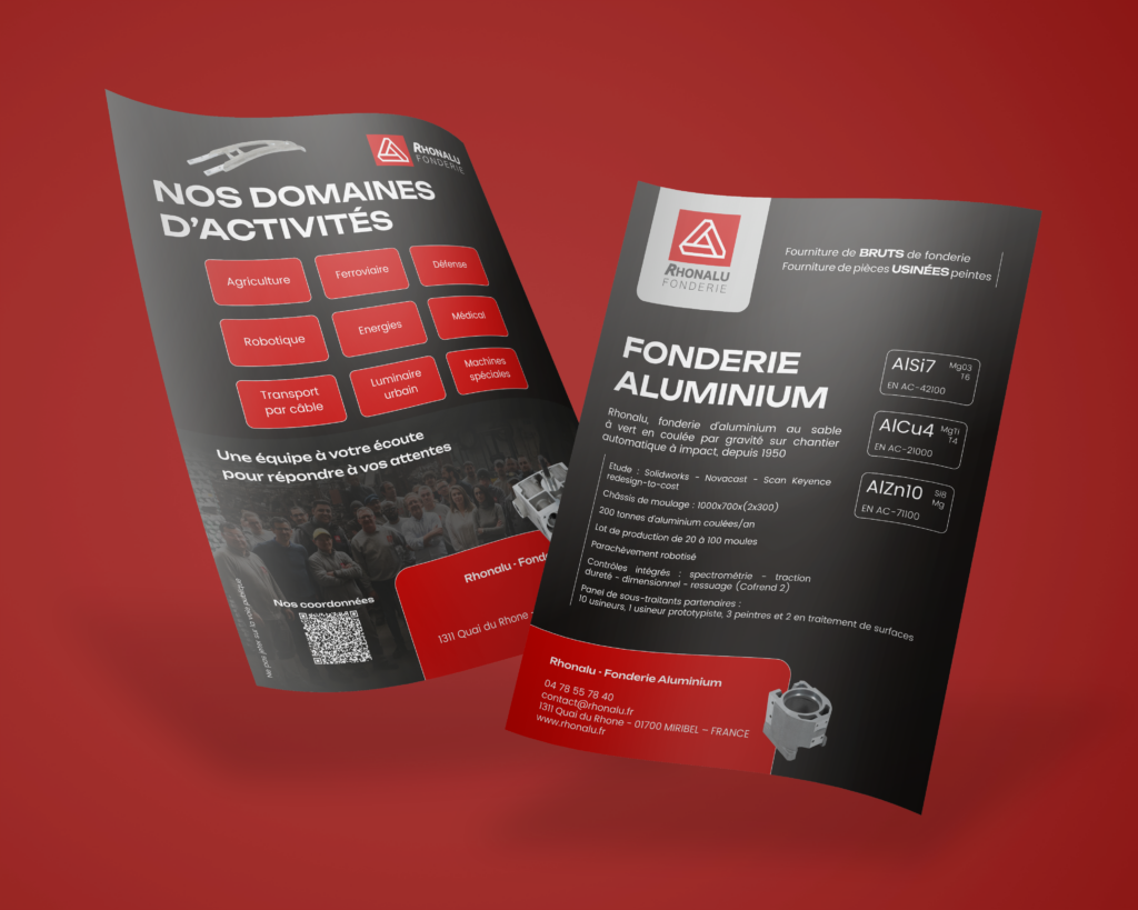 Dans un secteur industriel où la précision et la crédibilité sont essentielles, la communication doit être à la hauteur des exigences du marché. Pour cette entreprise de fonderie, l’enjeu était de concevoir un flyer bilingue français / anglais, capable de toucher une cible spécifique, au-delà des frontières.